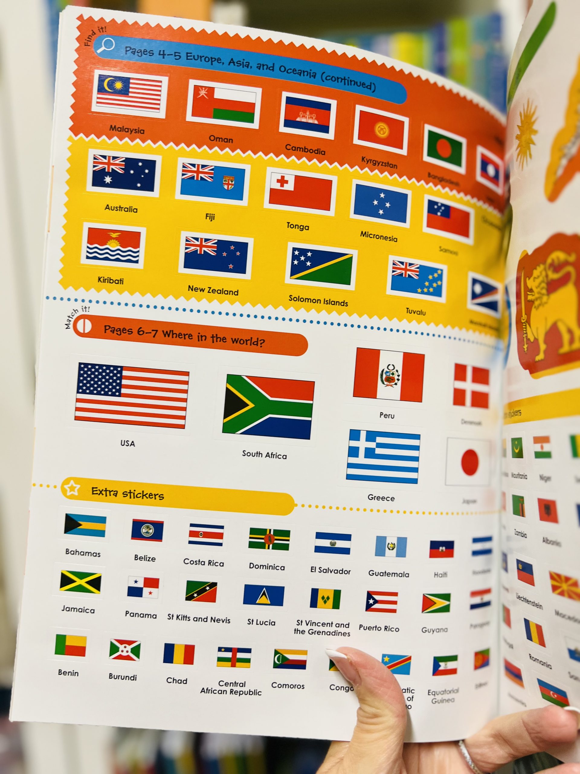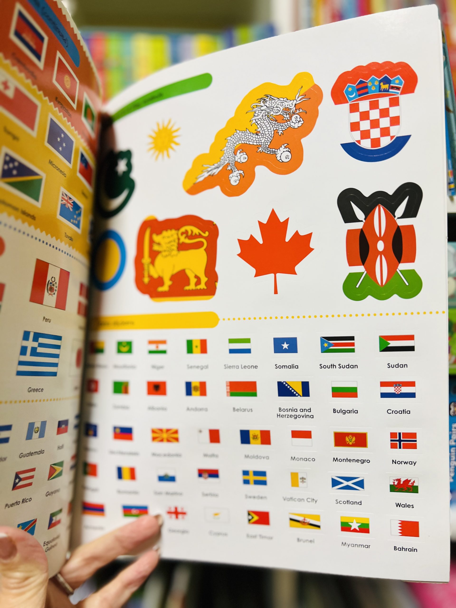 Pieno di fatti e zeppo di adesivi riutilizzabili su bandiere e paesi del mondo, Flags Around the World Ultimate Sticker Book è un libro che catturerà l’entusiasmo dei vostri bimbi e li terrà impegnati per ore.